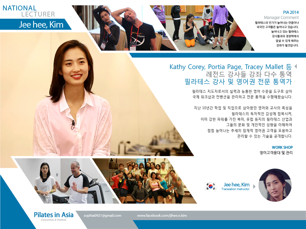 | Time : 2014. 06. 06 (fri) am 9:00 ~ 12:00 Venue : R7 Composition : Practice 60% + Theory 40% Capacity : 30 per Qualification for application : Pilates instructor |