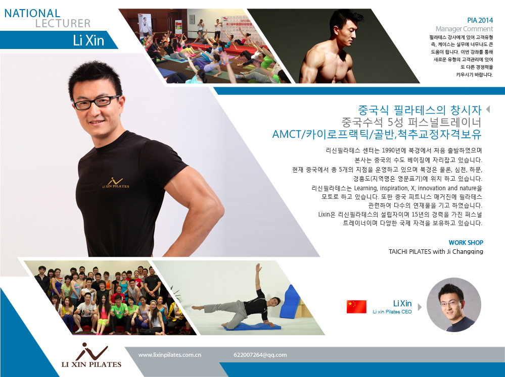 | Time : 2014. 06. 08 (sun) am 9:00 ~ 12:00 Venue : R7 Composition : Practice 70% + Theory 30% Capacity : 40 per Qualification for application : Pilates instructor |